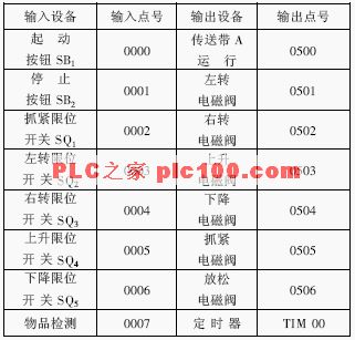 表1 機械手控制I/O分配表